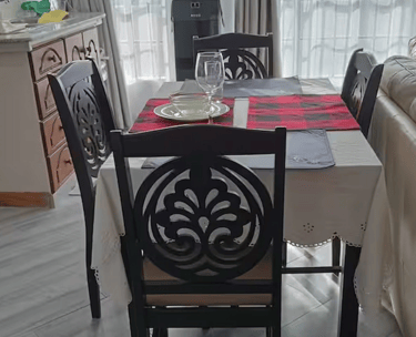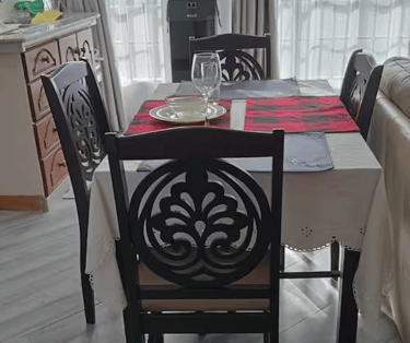 Open plan dining area for 4 people. – A comfortable setup for meals, work, or conversations.