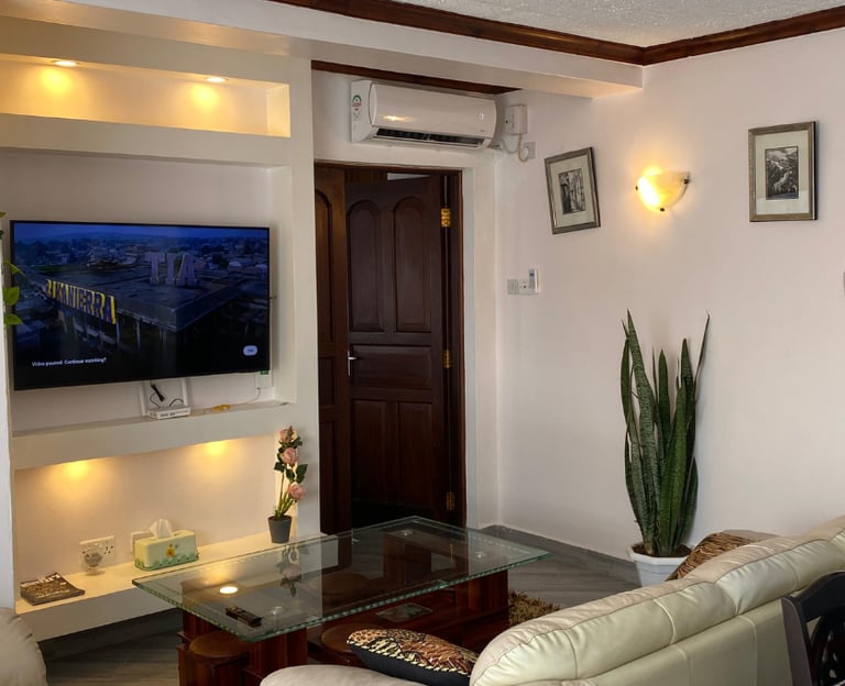 Our private balcony is the perfect spot for your morning coffee or an evening drink, offering fresh air and a peaceful escape. On the ground floor, the shared swimming pool invites you to take a refreshing dip and unwind under the warm Mombasa sun.